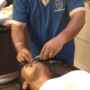Nasyam is an Ayurvedic detox therapy where herbal oils are given through the nose to calm the nervous system and relieve stress, sinus issues, migraines, allergies, and breathing difficulties.